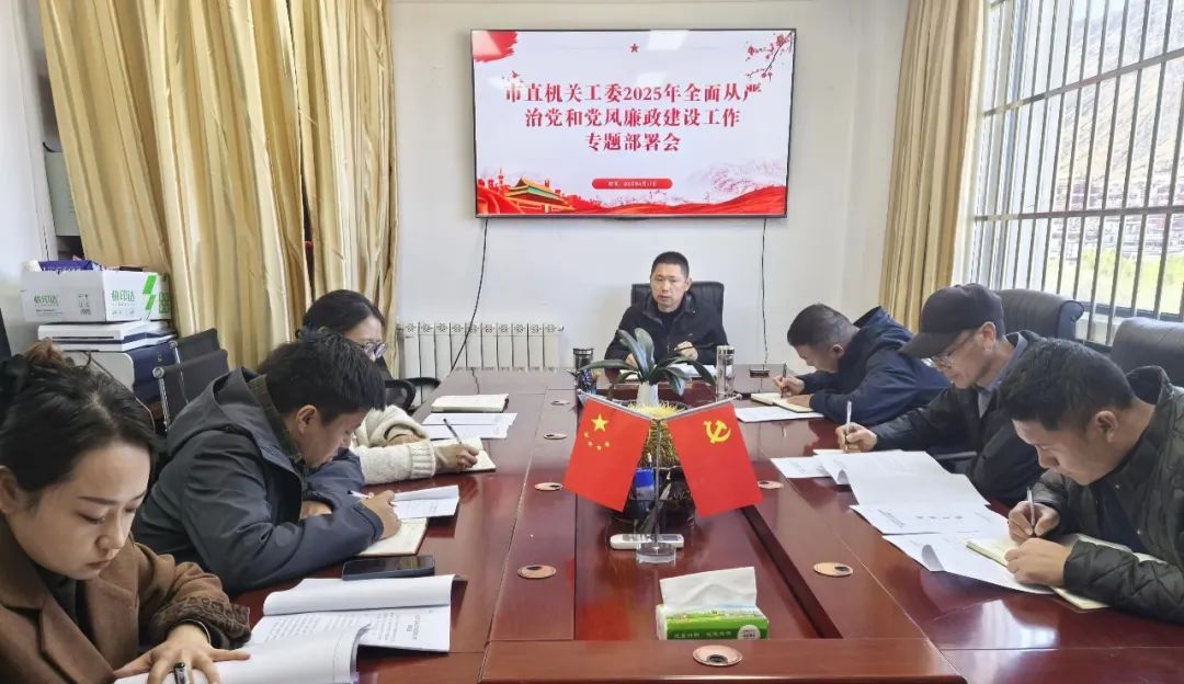 4月17日,市直机关工委召开2025年全面从严治党暨党风廉政建设工作专题部署会议,传达学习习近平总书记在二十届中央纪委四次全会上的重要讲话精神,自治区纪委十届五次全会和市纪委二届六次全会精神,集中学习《党委(党组)落实全面从严治党主体责任规定》,安排部署今年全面从严治党和党风廉政建设工作。