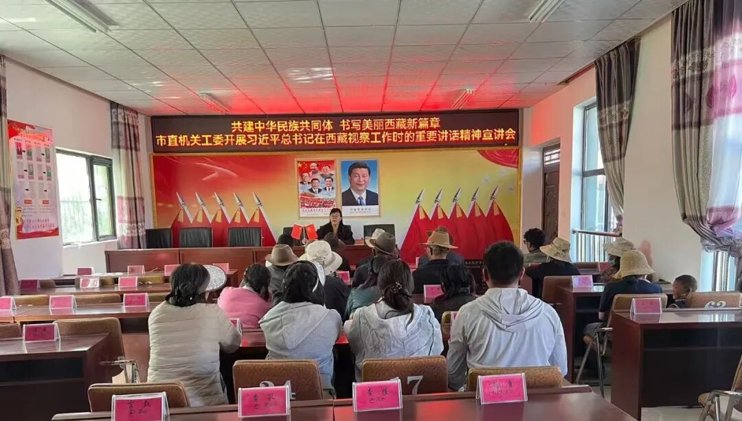 市直机关工委班子成员前往驻村点——江孜县江热乡亚吾村,宣讲习近平总书记在西藏视察工作时的重要讲话精神。