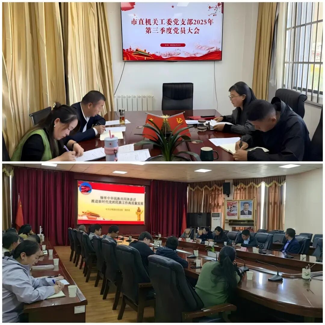市直机关工委组织开展“党建引领聚合力 民族团结一家亲”九月主题党日暨民族团结进步宣传月系列活动。市邮政管理局机关党支部联合市快递行业党委和市邮政快递行业团工委共同开展了“强化党性修养 筑牢爱国情怀”主题党日活动。市人民政府驻拉萨办事处以党建为引领,开展“共庆华诞七十六载 共建中华民族共同体”系列活动。市行政审批和便民服务局以“凝心铸魂同欢庆,团结奋进谱华章”为主题,开展了民族团结系列活动。