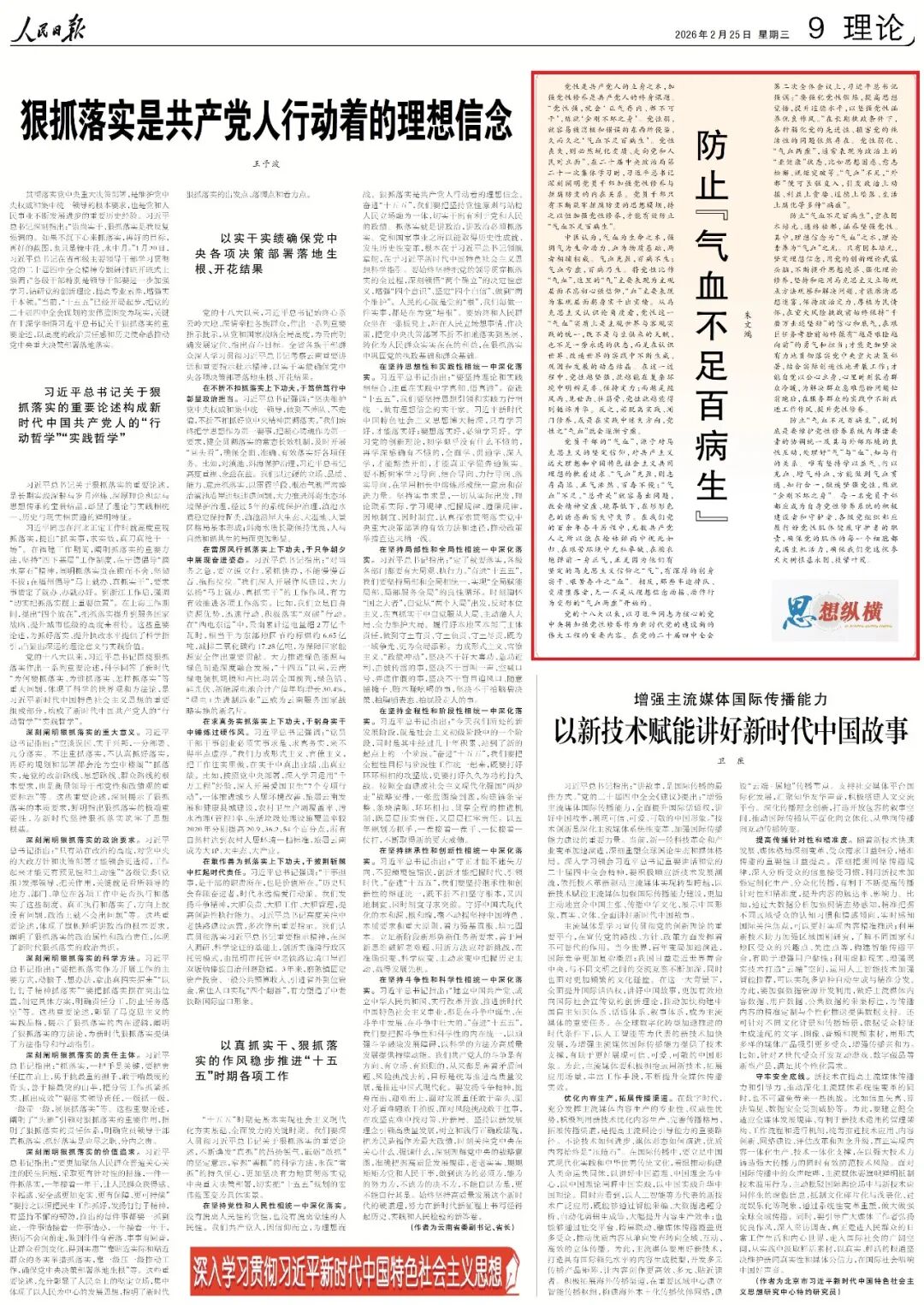 防止“气血不足百病生”,说到底是要维护党性修养系统内部诸要素的协调统一及其与外部环境的良性互动,处理好“气”与“血”、知与行的关系。唯有坚持学以益气、行以充血、增气补血,方能做到气血贯通、知行合一,锻造坚强党性,炼就“金刚不坏之身”。每一名党员干部都应成为自身党性修养系统的积极建设者和守护者,各级党组织都应履行好党性肌体健康守护者的职责,确保党的肌体的每一个细胞都充满生机活力,确保我们党这棵参天大树根基永固、枝繁叶茂。