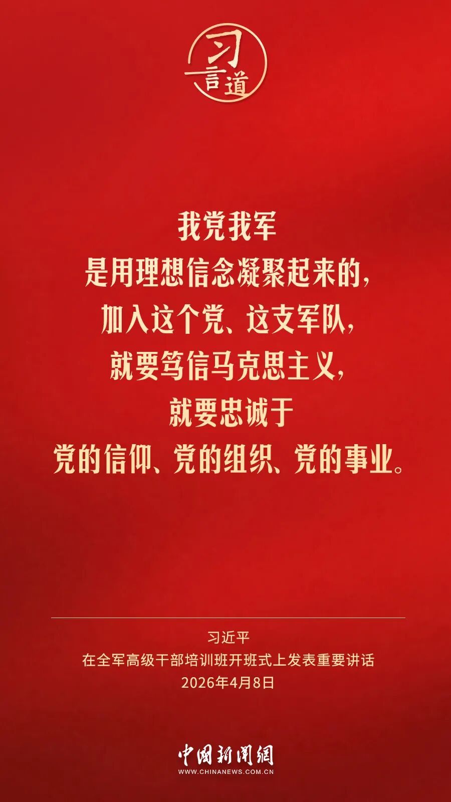 全军高级干部培训班8日在国防大学开班。中共中央总书记、国家主席、中央军委主席习近平出席开班式并发表重要讲话。他强调——