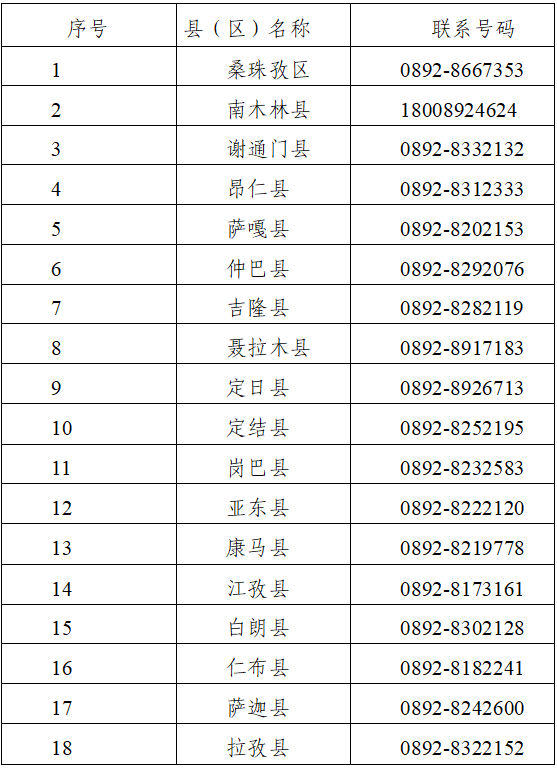 附件:日喀则市普通话水平测试各县(区)报名点联系电话