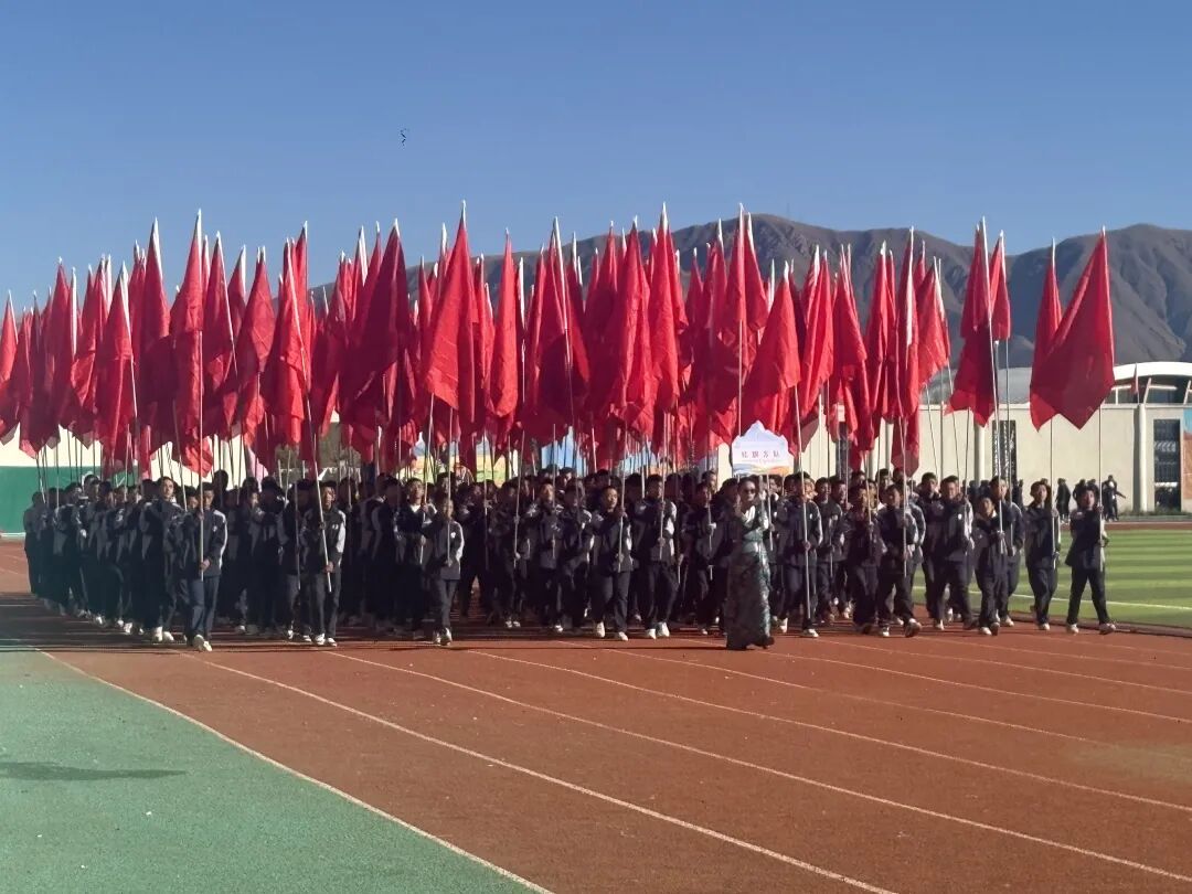 开幕式上,各方阵依次亮相,绘成流动风景线:红色旗帜方队高举红旗、目光如炬;市小学向日葵方队步伐轻快、笑容明媚;18县(区)方阵身着特色民族服饰,踏歌而舞,尽显珠峰儿女的自信与风采。