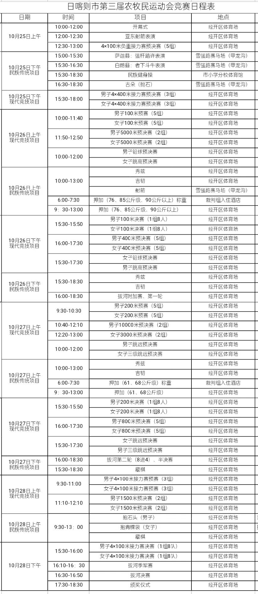 据悉,本届运动会为期4天(10月25日—28日),共有全市949名农牧民运动员参赛,赛事涵盖拔河、押加、跳远、铅球等38项现代竞技项目,以及萨迦县强杆踏许、白朗县者下斗牛、古朵(抛石头)等3个民族传统项目,精彩不容错过。