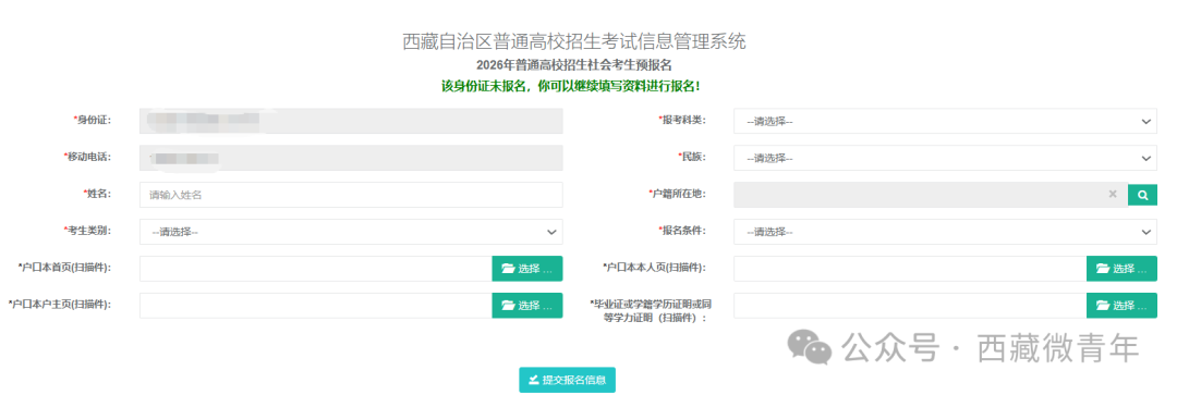 报名参加我区普通高考的考生,必须接受报考条件资格审查。审查内容包括本人户籍、学籍、实际就读和法定监护人的户籍及其在藏工作经历等。考生须按系统提示上传相关材料,等待地(市)教育招生考试机构审核。