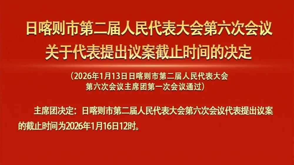 日喀则市第二届人民代表大会第六次会议关于代表提出议案截止时间的决定