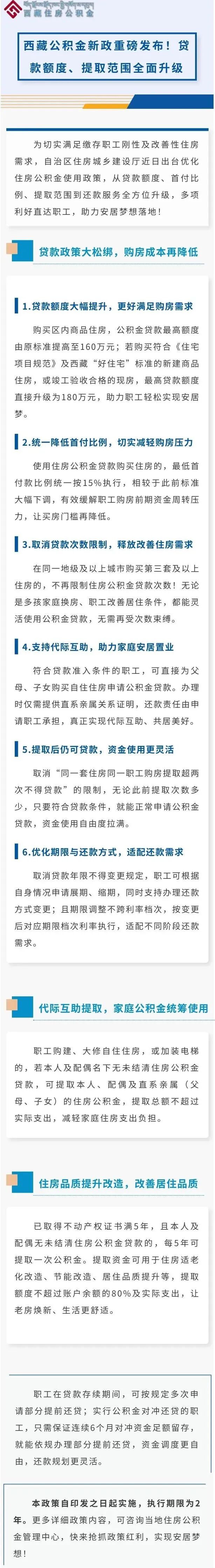 西藏公积金新政发布!贷款最高额度提高至……