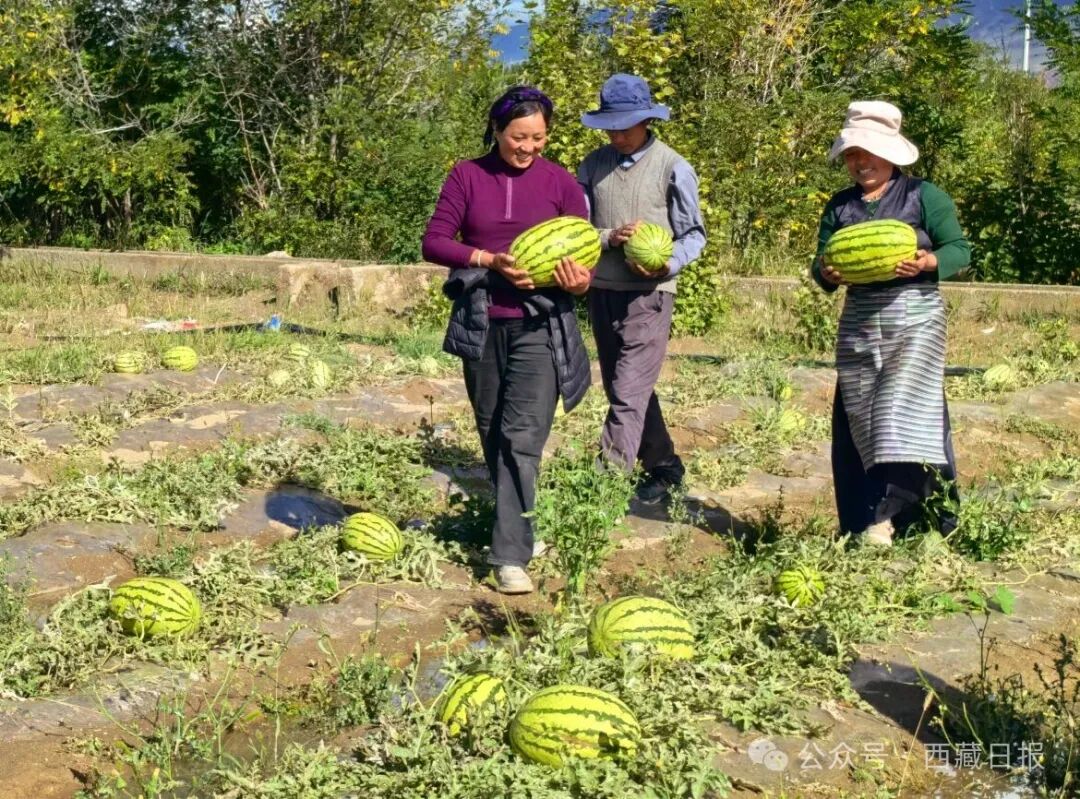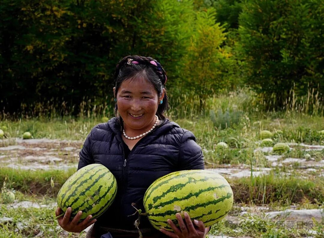 金秋时节,瓜果飘香。日喀则市桑珠孜区年木乡罗林村高海拔露地西瓜规模化种植首获丰收。