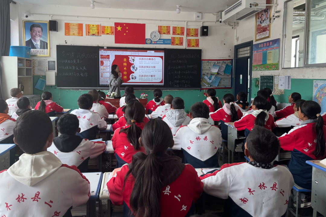 近年来,南木林县始终以铸牢中华民族共同体意识为主线,将民族团结工作贯穿县域发展全过程,构建起“校园标杆引领、文化浸润人心、实践全域覆盖”的工作格局,让民族团结之花在湘巴大地持续绽放。