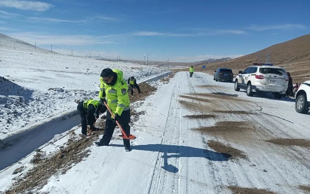 1月24日,受强冷空气影响,仲巴县迎来大风、降温和雨雪天气,部分道路出现积雪结冰,给交通安全带来严峻考验。面对恶劣天气,仲巴县公安局以雪为令、闻冰而动,迅速组织交管大队、霍尔巴公安检查站及各派出所全体民(辅、协)警,全力以赴开展除冰清雪、疏导保通工作,为群众安全出行筑起一道坚实屏障。