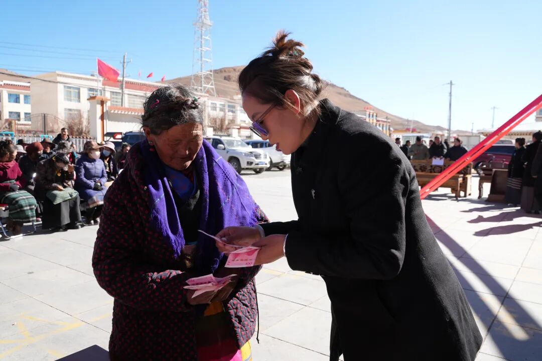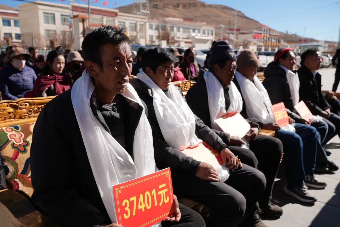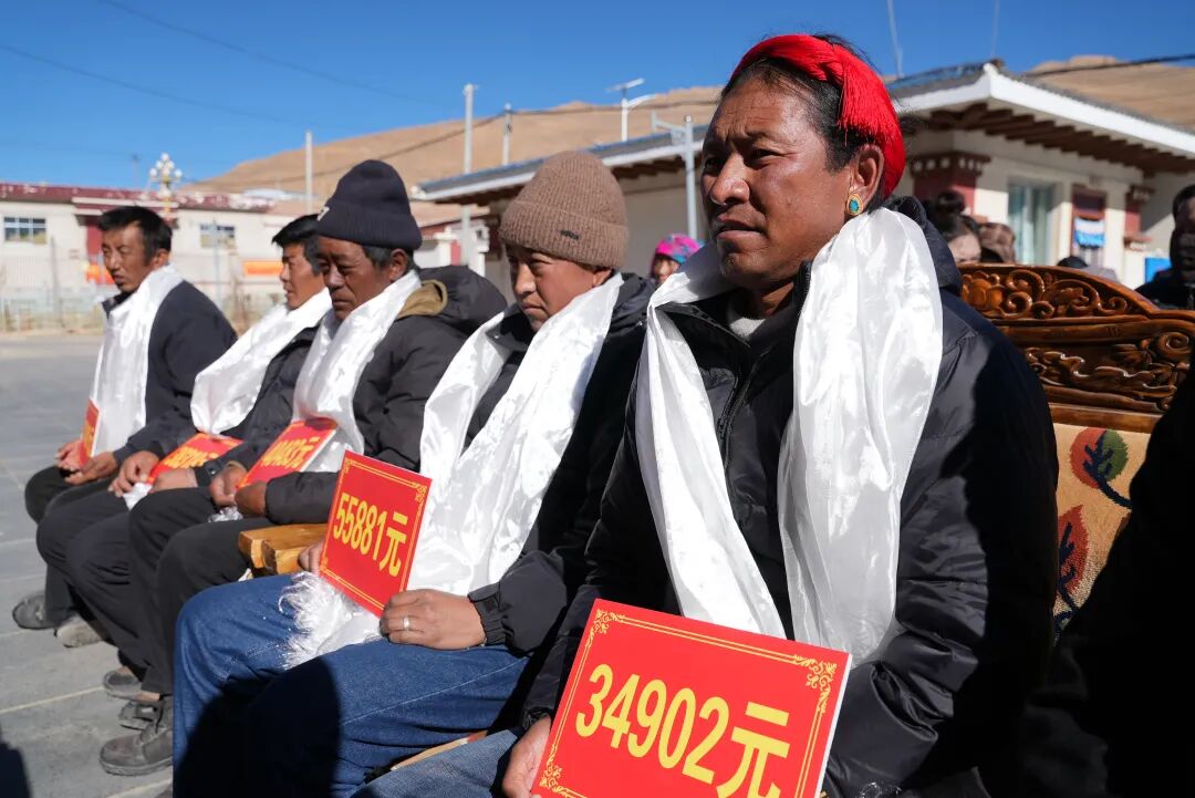 随后,县农业农村与科技局负责同志宣读了本次产业分红方案,明确了分红范围、标准及具体金额,让每一位受益群众都心中有数。本次分红重点惠及全县建档立卡脱贫户和未消除监测户,昌龙乡151户611人,分红资金80988元;孔玛乡60户209人,分红资金33992元;直克乡86户304人,分红资金45992元;龙中乡160户576人,分红资金84736元;岗巴镇159户591人,分红资金111292元;未消除监测户9户31人,分红资金18000元。本次分红合计375000元。