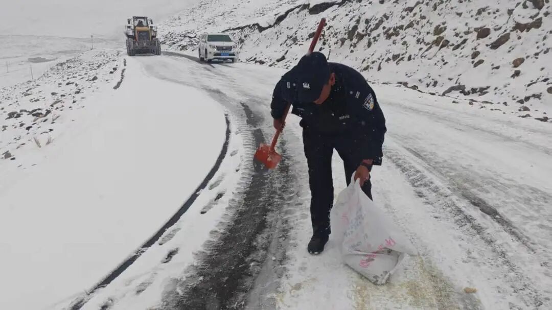 面对降雪降温天气,全体民(辅)警以雪为令、闻雪而动,第一时间开展清雪除冰作业,对易积雪、易结冰路段及时清理处置,增设安全警示提示,加强巡逻管控与现场疏导,全力保障道路通行条件,帮助受困车辆安全脱困,用实际行动温暖风雪归途。