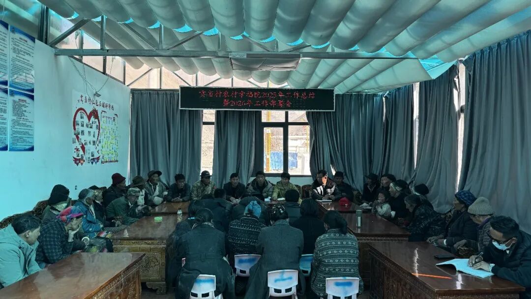 今日,贡当村召开农村幸福院2025年工作总结暨2026年工作部署会,并同步举办老年人幸福生活交流会。村“两委”班子、驻村工作队、幸福院工作人员及村内老人、家属代表齐聚一堂,共话养老服务成效、共谋幸福院发展、共叙晚年幸福生活。