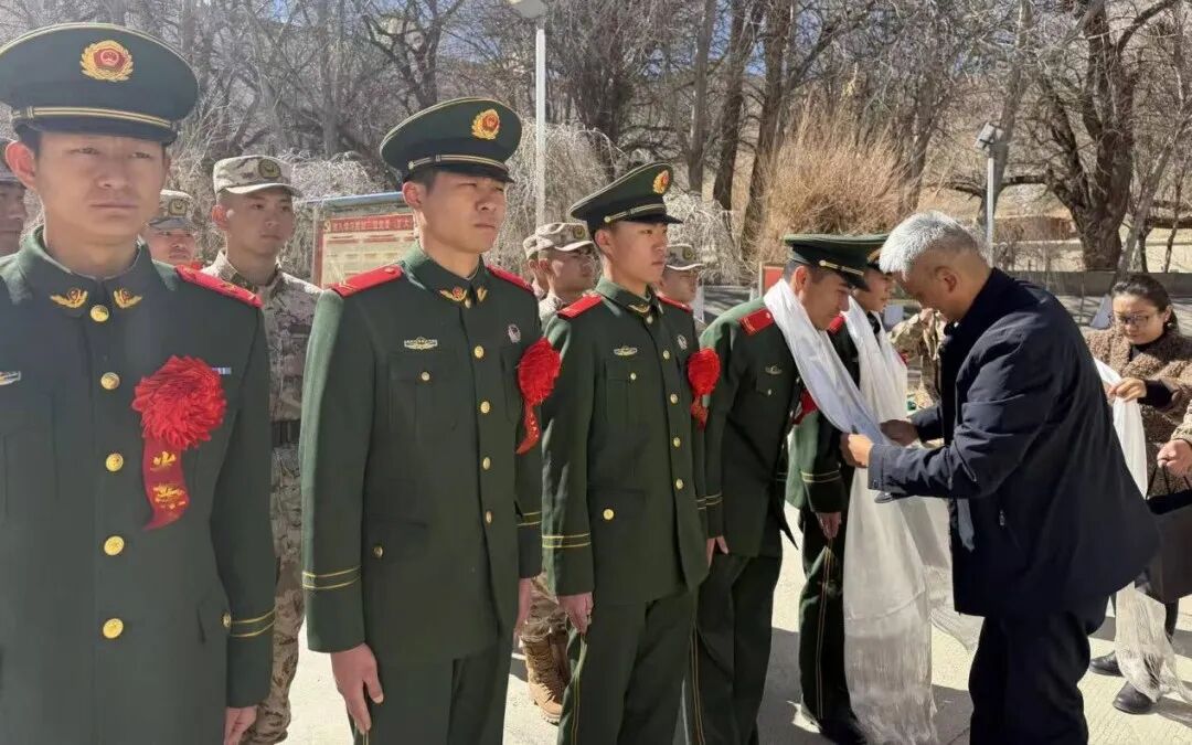仪式现场庄重温情,扎西巴桑代表县委、县政府,向全体官兵表示慰问和感谢,为5名退伍老兵献上哈达和纪念品,感谢他们以过硬作风与实际行动守护白朗社会大局稳定,为地方发展与长治久安筑牢安全屏障,用青春与汗水书写军人担当,希望老兵们永葆军人本色,传承优良传统,在新岗位上续写荣光。退伍官兵纷纷表示,将铭记部队培养与地方关怀,珍惜军旅荣光,带着深厚情谊投身家乡建设和国家发展,以实际行动展现退役军人风采。