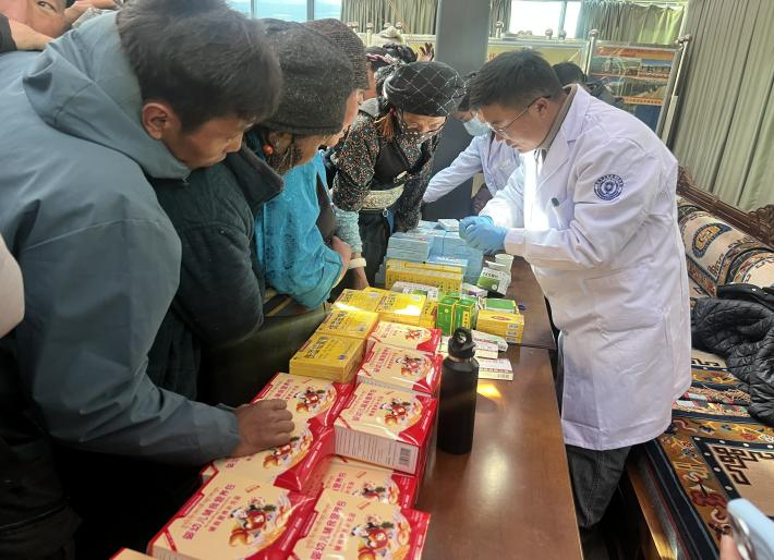 志愿+健康义诊,真情服务护安康。县医务工作者现场开展健康义诊服务,细心为群众测量血压、血糖,耐心答疑解惑、普及健康养生、日常饮食等卫生知识,引导群众树立科学健康的生活理念。活动现场免费发放感冒药、膏贴、儿童营养餐等18类药品,累计惠及群众89人,以实际行动守护群众身体健康。