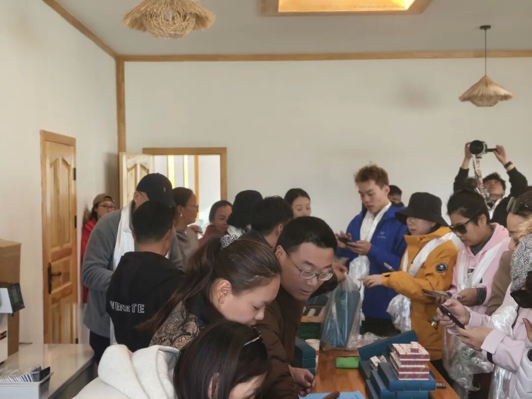 文化交融,草原牧歌传递深情。此次接待不仅是一次服务,更是一场深刻的文化交流。工作人员向游客们动情地讲述了帕里人“一生放牧,世代守边”的光荣历史使命,让游客在欣赏壮美风光的同时,更理解了这片土地上人民家国情怀的深沉与崇高。驿站内陈列的富有民族特色的藏香、咖啡杯、明信片等文创商品,也吸引了游客的目光,成为传递帕里文化的美丽信物。