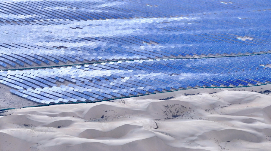 ▲2025年5月17日,这是内蒙古鄂尔多斯市达拉特旗一处装机100万千瓦的光伏基地(无人机照片)。近年来,内蒙古将东部算力需求有序引入当地,坚持走以生态优先、绿色发展为导向的高质量发展新路。 新华社发(杨耀中 摄)