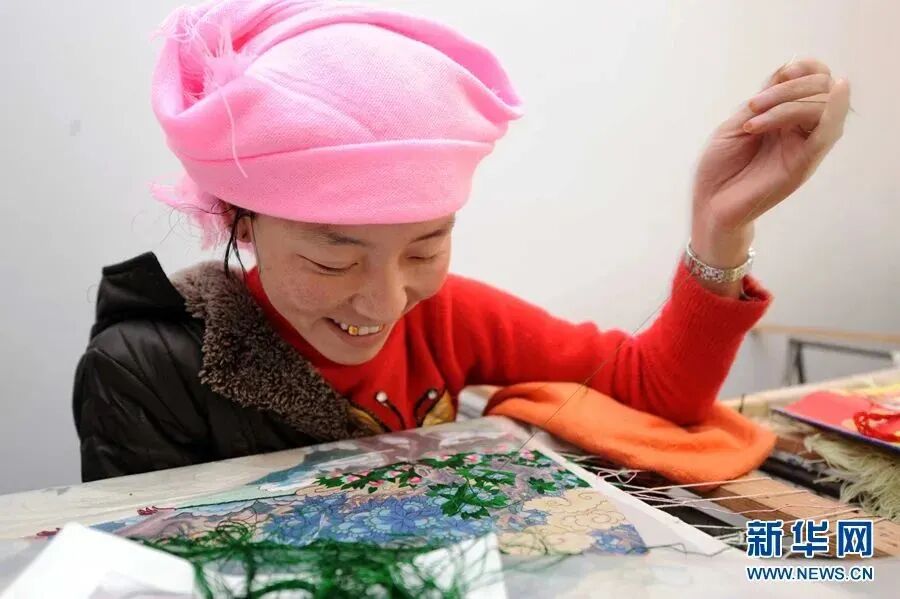 ▲青海省海南藏族自治州贵南县的绣娘在绣制传统藏绣。 新华社记者 侯德强 摄
