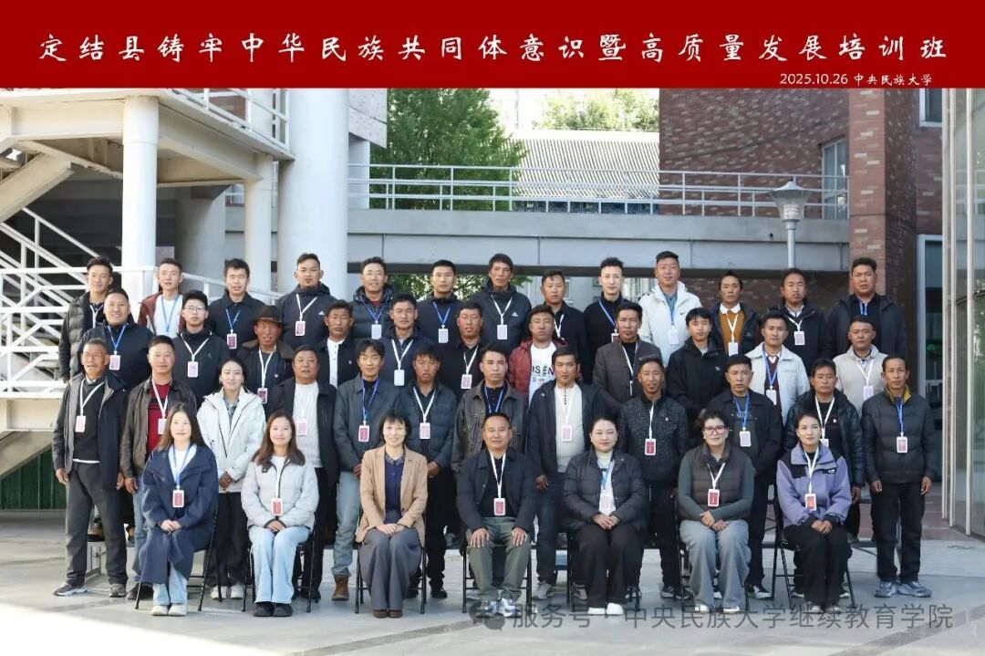 2025年10月25日至31日,受西藏定结县委组织部委托,中央民族大学继续教育学院在海淀校区举办“定结县铸牢中华民族共同体意识暨高质量发展培训班”。此次培训系两地优势互补、深化人才培养合作的重要举措,旨在为定结县打造一支政治过硬、能力突出的基层干部队伍。