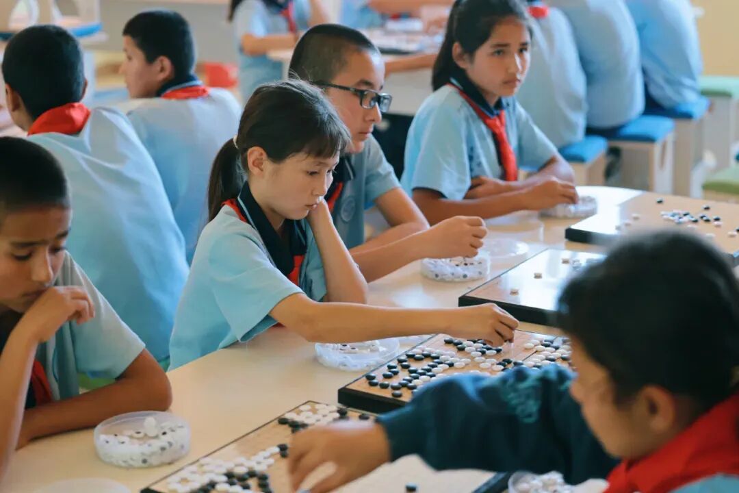 ▲2024年9月23日,在新疆乌什县依麻木镇国家通用语言学校,学生们在下围棋。 新华社记者 任沁沁 摄