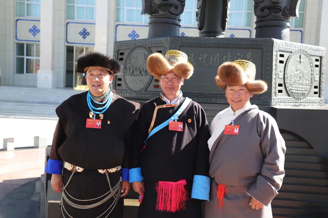 图为8位自治区人大代表在民族团结宝鼎前合影。左起:玉珍(僜人)、次仁普只(门巴族)、加凳(藏族)、成海宏(汉族)、仁增(夏尔巴人)、仁青措珍(纳西族)、达娃(珞巴族)、斗卓玛(门巴族)。