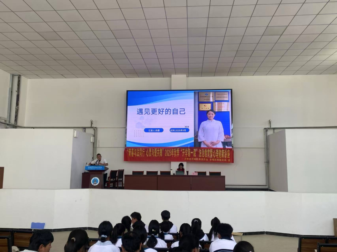 在法治教育方面,专家通过真实案例剖析,生动讲解《民法典》并重点阐述《中华人民共和国网络安全法》《未成年人网络保护条例》等相关法律法规,帮助学生明确网络犯罪边界,学会识别诈骗与应对网络欺凌,并知晓维权通道。让学生厘清法律底线与权利义务,树立法治信仰,做到尊法、知法、守法、用法。在心理健康教育方面,讲师以自身经历为引子,围绕“生命韧性”展开分享。鼓励学生们:“真正的强大不是不曾跌倒,而是跌倒之后依然能重新站起”,并从“如何遇见更好的自己和自我成长途径”两个方面来进一步帮助学生增强心理调适能力,培养积极向上的心态。