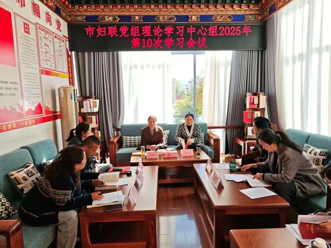 10月16日,市妇联党组召开理论学习中心组2025年第10次学习会,专题学习了《习近平谈治国理政》(第五卷)。会议由市妇联党组书记、副主席拉巴确吉主持,班子成员、各科室(部、中心)负责人参加会议,与会人员围绕《习近平谈治国理政》(第五卷)开展交流研讨。