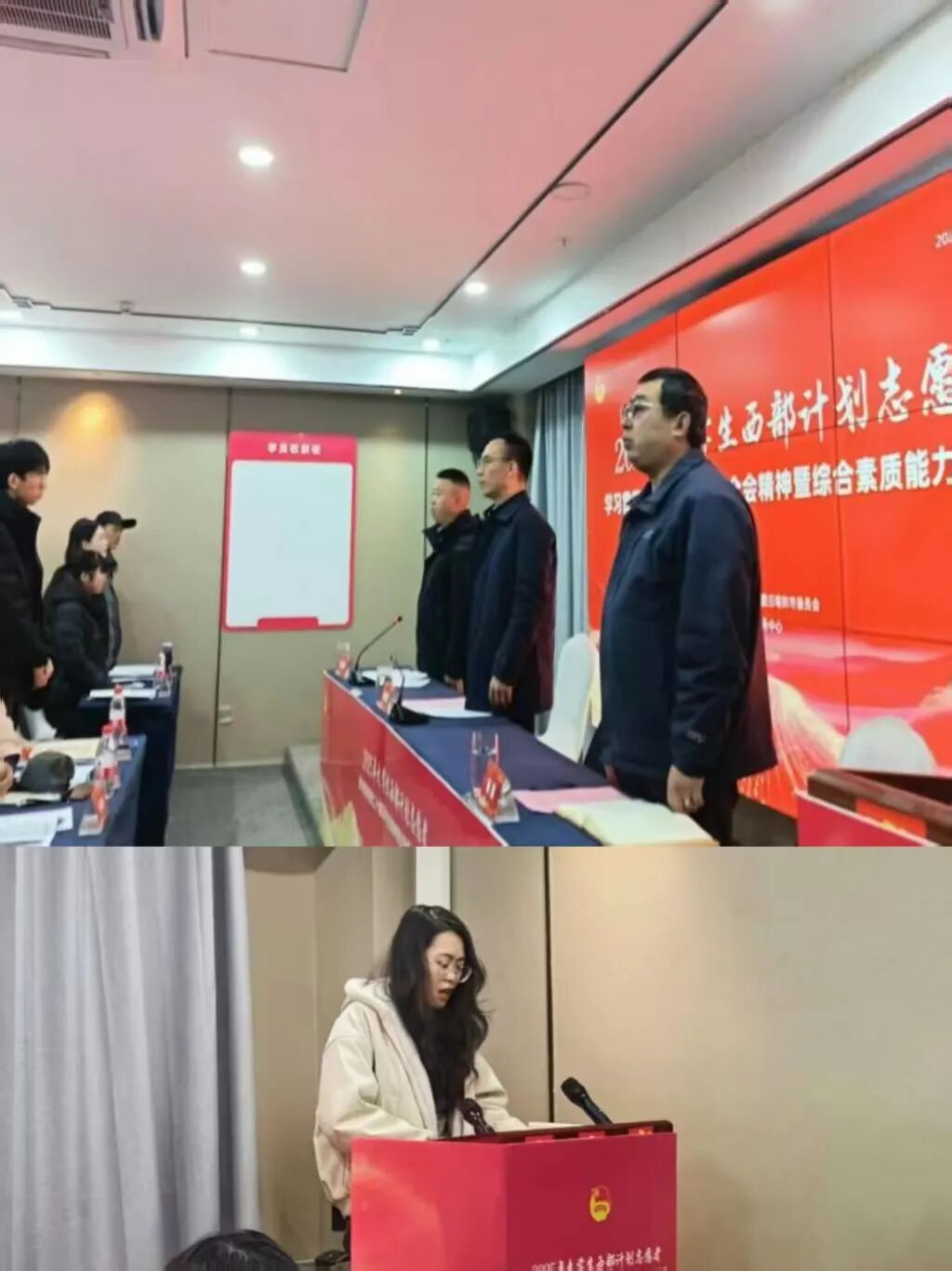 开班仪式在庄严的国歌声中拉开序幕。现场书面传达学习了《习近平致信祝贺中国志愿服务联合会第三届会员代表大会召开》《习近平给谢依特小学戍边支教西部计划志愿者服务队队员回信》等重要文件精神,引导志愿者将习近平总书记的殷切期望转化为扎根基层、服务西藏的强大动力。学员代表刘俊妍在发言中分享了投身西部志愿服务的初心与抱负,字里行间饱含对雪域高原的热爱与责任担当,展现了新时代青年的昂扬风貌。