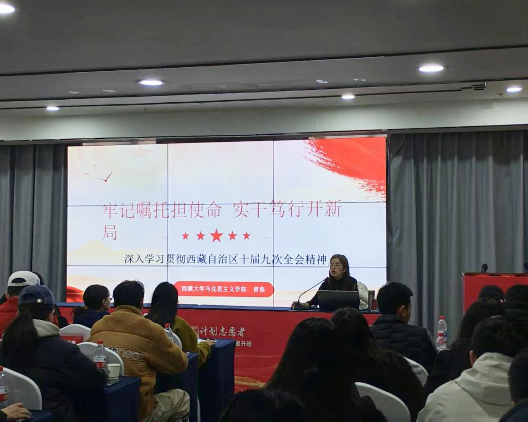 马德彪同志在动员讲话中,结合“十五五”规划开局起步关键节点与西藏自治区成立60周年发展成就,深刻解读了党的二十届四中全会精神核心要义。他指出,志愿者们奔赴雪域高原的选择,是对“到西部去、到基层去、到祖国最需要的地方去”号召的生动响应,更是融入国家大局、实现人生价值的自觉担当。针对志愿者成长发展,他提出四点期望:一是筑牢信仰之基,在深学细悟中把准青春方向,深刻领悟“两个确立”的决定性意义;二是锤炼过硬本领,以“空杯心态”勤学政策实务与实用技能,成长为复合型人才;三是厚植为民情怀,扎根基层一线解决群众急难愁盼,让民族团结之花绽放;四是坚守奋斗本色,传承“老西藏精神”,在攻坚克难中擦亮青春底色。