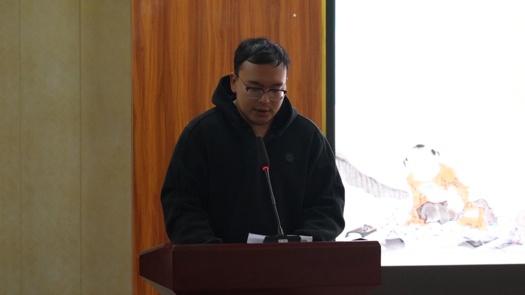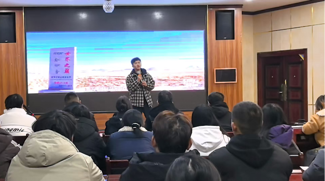 本次活动以“奋斗青春 志愿最美”为主题,精心设置“唱、看、诵、讲、谈、送”六个环节,内容丰富、形式新颖。活动伊始,西部计划志愿者姜文浩演唱歌曲《我相信》,用激昂旋律展现青年志愿者的服务风采与青春朝气;随后,志愿者们共同观看《织梦于微,情暖高原》志愿服务宣传片,10分钟的影像生动呈现了志愿者们扎根高原、默默奉献的动人场景;在集体朗诵环节,西部计划志愿者们齐声诵读《迫近》,以经典之声传递青春担当;于雪融同志分享的《我的西部计划故事》,用真实经历诠释了志愿精神的深刻内涵,引发全场共鸣;在互动感悟环节中,志愿者代表结合自身服务经历畅谈心声,交流志愿服务中的收获与成长;最后的“送一份吉祥”环节,通过共青团、西部计划相关知识问答互动,主讲人向参与者赠送“道德讲堂”小礼品,在趣味互动中深化大家对志愿工作的认知。