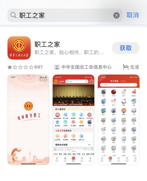 1.“职工之家”APP已登录各大应用商店,在安卓系统和IOS系统手机应用市场搜索“职工之家”即可下载。