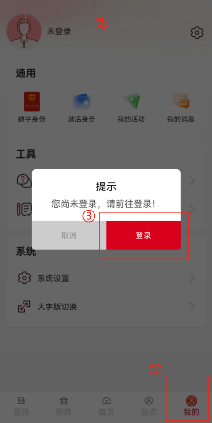 2.在右下方【我的】页面点击【未登录】,选择【登录】。