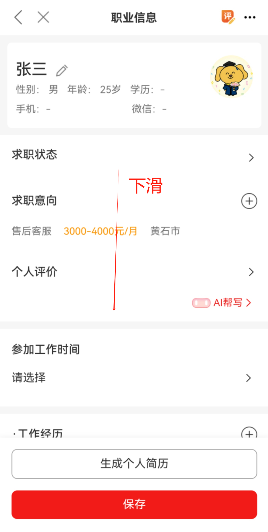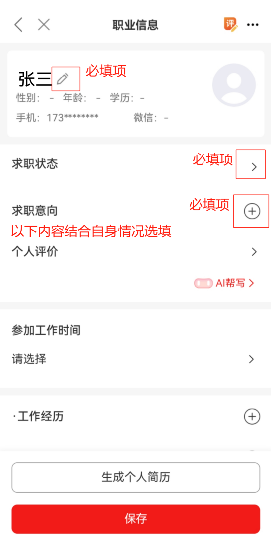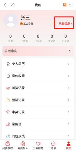 4.登陆成功后,点击【职业信息】,填写个人信息并保存。