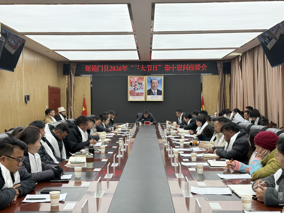 春节、藏历新年来临之际,谢通门县召开“三大节日”慰问座谈会。县群团工作部副部长、总工会副主席尼玛顿珠主持会议,县委常委、组织部部长、党校校长葛晓勇出席并讲话,县直各部门参加会议。会上,传达学习了习近平总书记关于工人阶级和工会工作的重要论述,自治区党委书记王君正对全区工会工作的批示。会议指出,过去一年,全县上下紧扣发展大局,凝心聚力、真抓实干,各项事业稳步推进、成效显著。葛晓勇同志代表县委、县政府向与会干部职工敬献哈达、赠送慰问金,致以诚挚的节日问候和美好祝福。