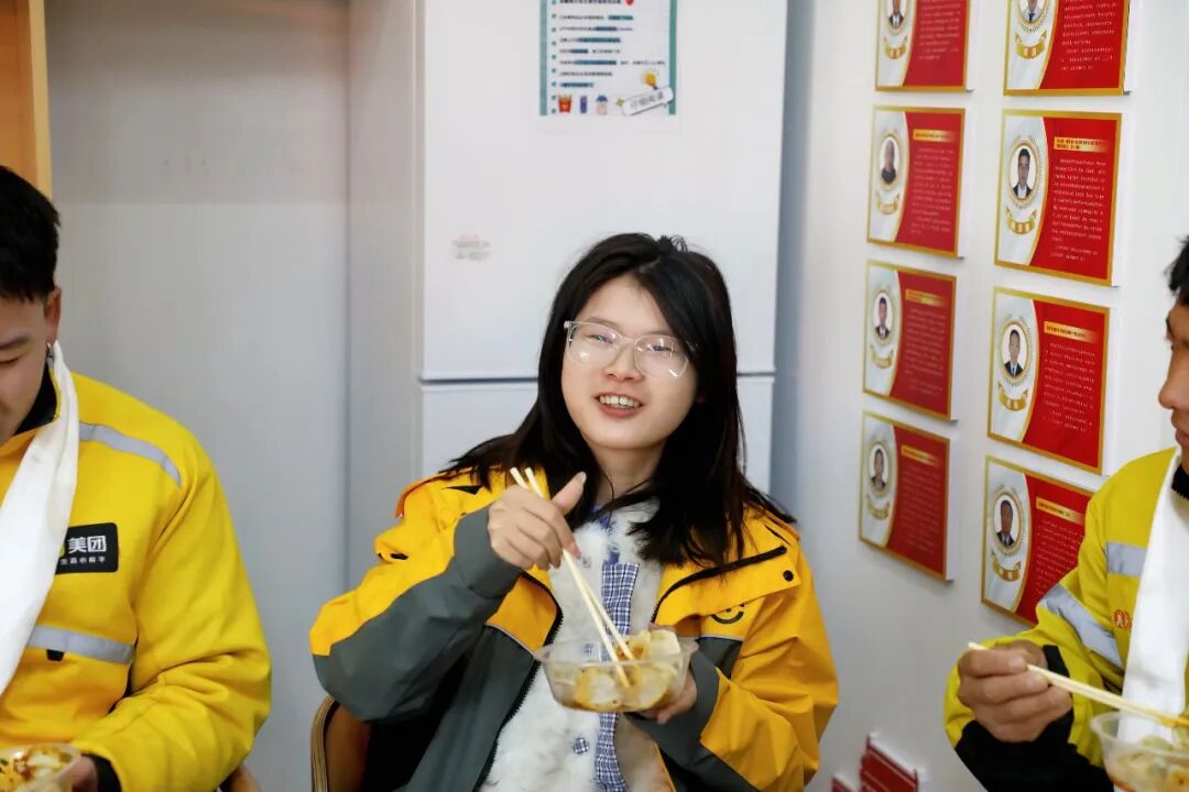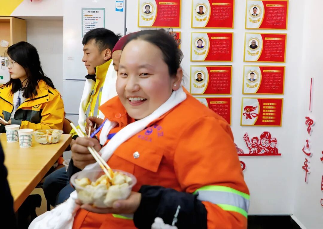 “太暖心了!平时奔波在外,累了能在工会驿站歇脚、喝口热水,今天小年,还能吃上这么热腾腾的饺子,收到工会的关怀和祝福,心里比饺子还暖!”美团外卖负责人王梓龙手捧着饺子,眼里满是感动,“这份关怀让我们感受到了家的温暖,也让我们更有干劲了,以后一定会继续坚守岗位,做好服务!”(图:张晓诗 视频制作:张晓诗)