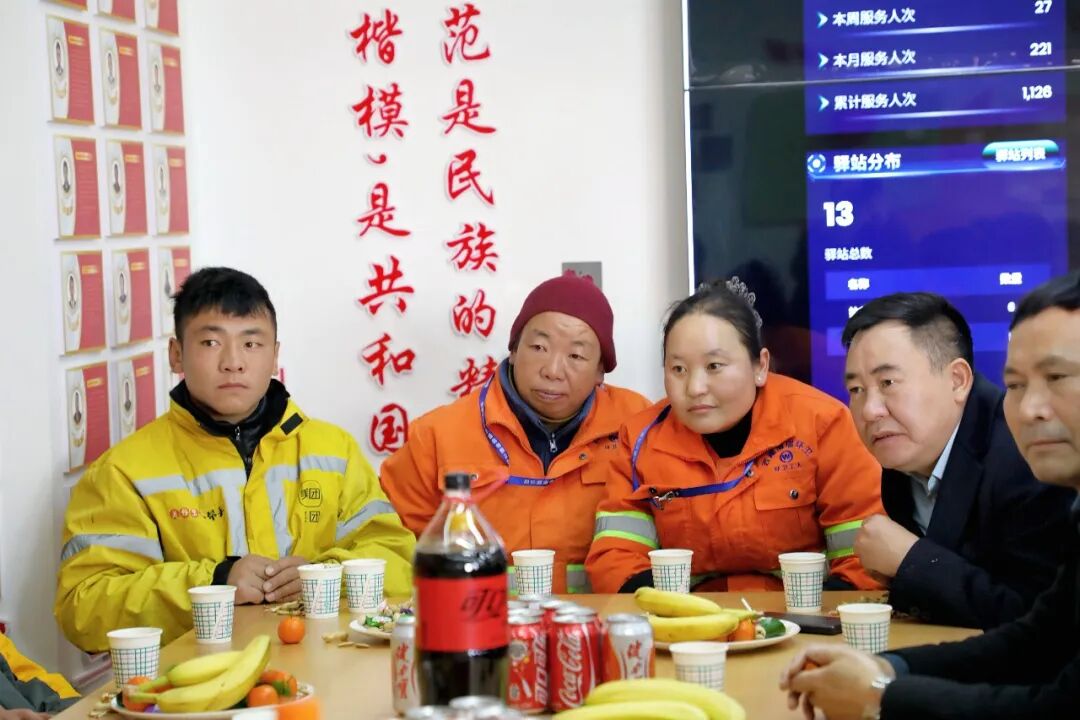 “大家辛苦了!节日期间还坚守岗位,为城市的有序运转默默奉献,谢谢你们!”自治区人大常委会副主任,区总工会党组书记、主席唐明英,携区总工会在家班子成员走进驿站,与大家促膝长谈、亲切互动,详细询问他们的日常工作生活和冬季防寒保暖情况,对他们节日期间坚守岗位、服务群众的辛苦付出给予充分肯定和衷心感谢。