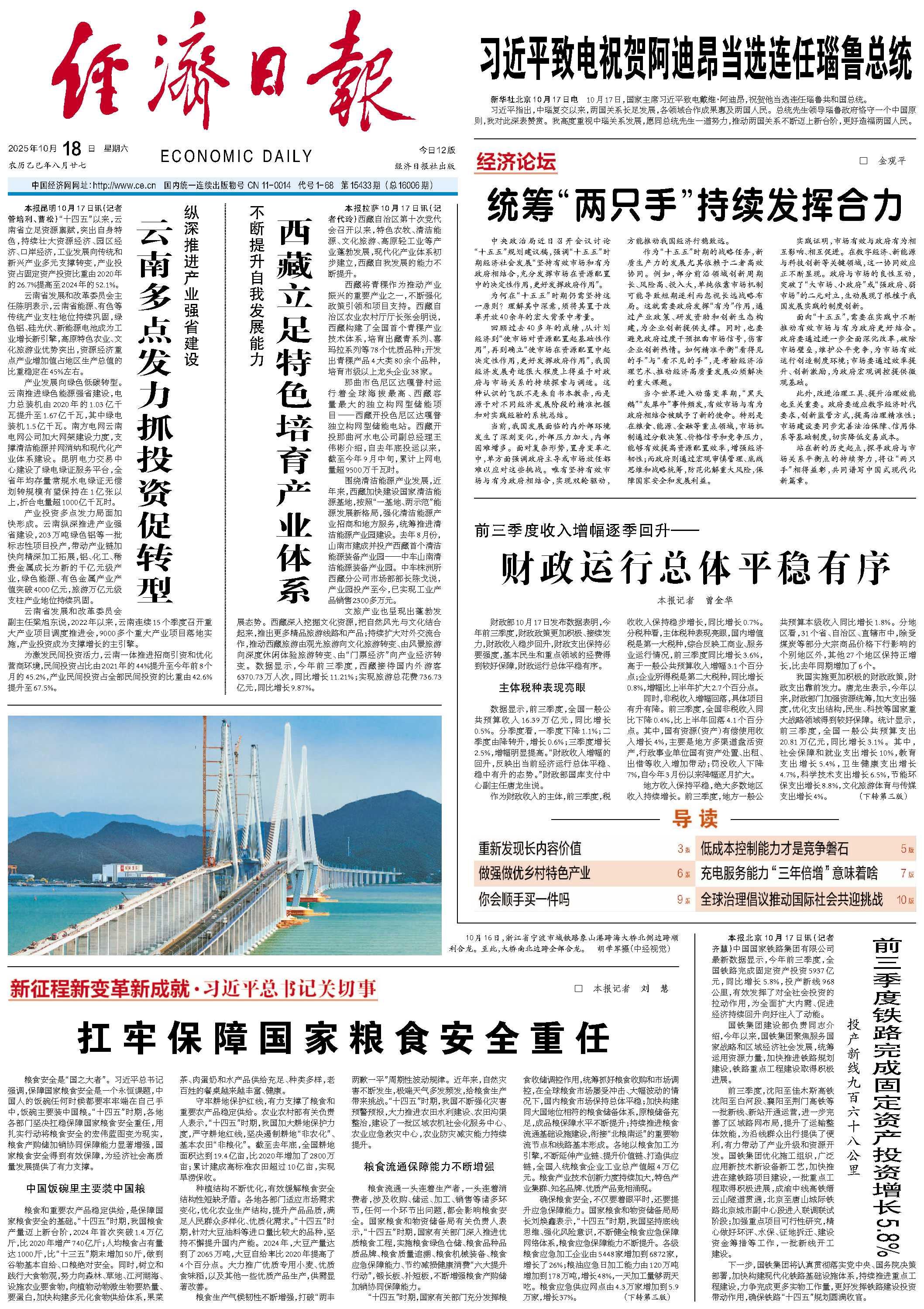 经济日报拉萨10月17日讯(记者代玲)西藏自治区第十次党代会召开以来,特色农牧、清洁能源、文化旅游、高原轻工业等产业蓬勃发展,现代化产业体系初步建立,西藏自我发展的能力不断提升。