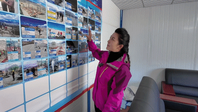 在位于定日县长所乡的其中一个灾后重建办的办公室,记者找到了关于中国奇迹的答案。记者身后的这些部分照片,是在施工进展当中所拍摄的,记者眼中看到的不止有明亮的对比,更多的是昼和夜的变化。