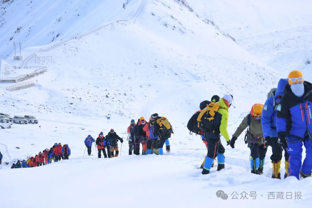 4月29日至5月3日,2025第二十二届中国西藏登山大会暨纪念中国人再登珠穆朗玛峰50周年系列活动——洛堆峰登山探险活动在拉萨市羊八井镇举行。图为5月2日,登山爱好者向洛堆峰峰顶进发(资料图片)。记者 潘多 郑璐 明吉 摄影报道