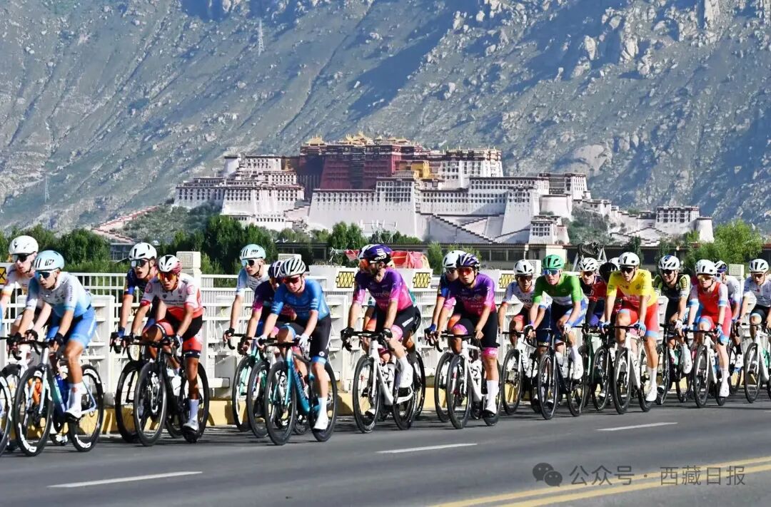 8月9日上午,由国家体育总局、中央广播电视总台、西藏自治区人民政府主办的2025中国西藏第六届跨喜马拉雅国际公路自行车极限赛第三赛段拉萨绕圈赛在拉萨市鸣枪开赛。图为比赛现场。记者 洛桑平措 摄