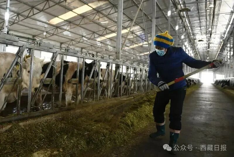 图为拉萨市城关区高标准奶牛养殖中心的工作人员正在清理牛舍。记者 旦增兰泽 摄