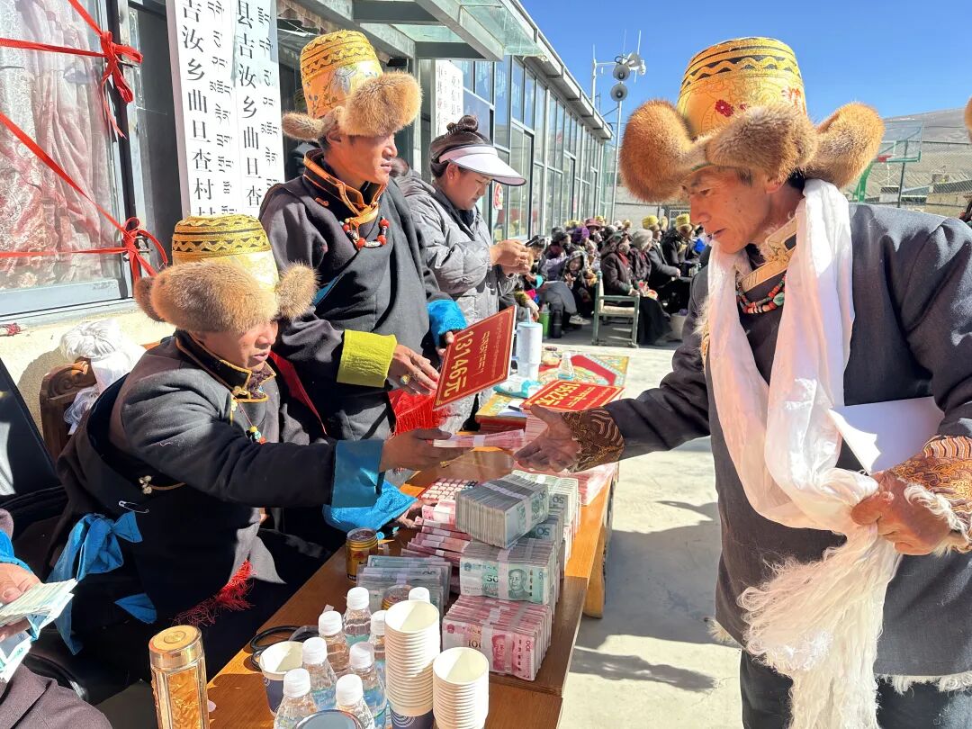 近日,日喀则定日、亚东、岗巴等地的多个村庄陆续举行村集体经济分红仪式,鲜红的现金、实用的生活物资、暖心的慰问礼品陆续送到村民手中。镇村干部、驻村工作队与全体村民齐聚一堂,在欢声笑语中共享发展成果,让这个冬日充满暖意,更凝聚起乡村振兴的强劲合力。
