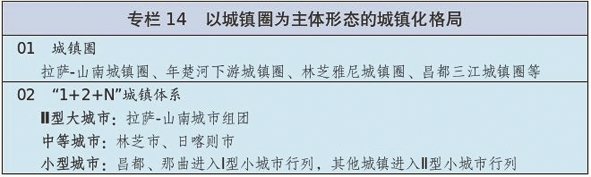 支持地处重要战略方向、关键通道节点的边境重点县城发展,构建以边境地(市)中心城市为支撑、边境县城为核心、口岸和重点城镇为节点,服务国家重大战略需要的边境城镇体系。加强固边型城镇建设,发挥沿边通道重点城镇辐射带动作用,推进察隅、墨脱、米林、错那、隆子、洛扎、亚东、吉隆、普兰、札达、日土等城镇建设,依托新藏综合交通运输通道,支持萨嘎、仲巴、狮泉河等城镇建设。支持定日地震受灾地区振兴发展。巩固提升边境地区人口数量,加强边境新村建设,规划建设住房和配套设施。