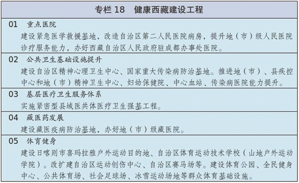 实施健康西藏保障工程,提升自治区、地(市)级医疗机构服务能力,推进专科医院建设,提高医疗服务覆盖面和可及性,补齐传染病诊疗服务短板。深入推进医疗卫生强基工程,加强紧密型医联体建设,促进县域医疗卫生体系健康发展,加快建设分级诊疗体系,促进优质医疗资源扩容下沉和区域均衡布局。支持“互联网+医疗健康”发展,推进健康医疗数据信息跨机构互通、跨地区共享,逐步推行医疗机构检查检验结果互认和影像资料共享。深化以公益性为导向的公立医院改革,建立医疗服务为主导的收费机制。实施医疗卫生人才培养工程,加大全科医师、住院医师培养力度,每年选派医生到对口援藏省(市)三甲医院跟班学习。
