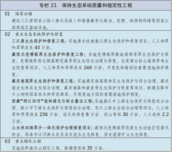 ——美丽西藏建设取得重大进展。绿色生产生活方式基本形成,生态环境质量保持全国领先,清洁低碳安全高效的新型能源体系初步建成,国土绿化面积不断扩大,生态系统多样性稳定性持续性逐步提升,国家生态文明高地建设取得重大成效,2030年前碳达峰目标如期实现。