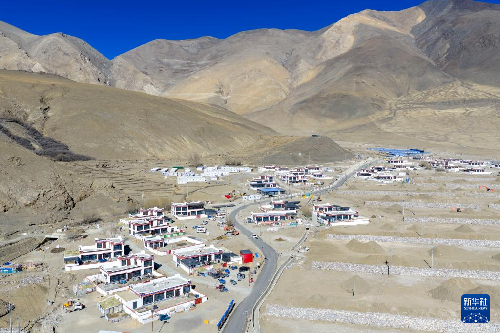 2月16日拍摄的西藏定日县长所乡古荣村灾后重建的新居(无人机照片)。新华社记者 旦增尼玛曲珠 摄