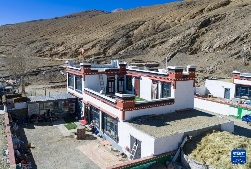 2月16日拍摄的长所乡古荣村村民桑杰家的新居(无人机照片)。新华社记者 旦增尼玛曲珠 摄