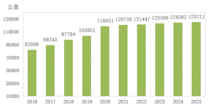 图8 2016-2025年公路通车里程