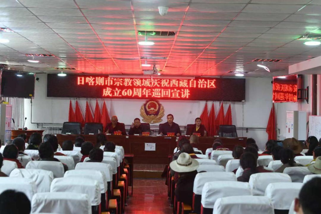 8月26日,日喀则市宗教领域庆祝西藏自治区成立60周年巡回宣讲在仲巴县顺利举行。本次活动深入学习宣传了国家关于宗教工作的重要论述精神和法律法规,进一步提升仲巴县涉宗人员的政策理论水平、法治观念和业务能力。来自全县各宗教活动场所的教职人员及相关民俗宗教服务人员共计70余人参加了本次活动。