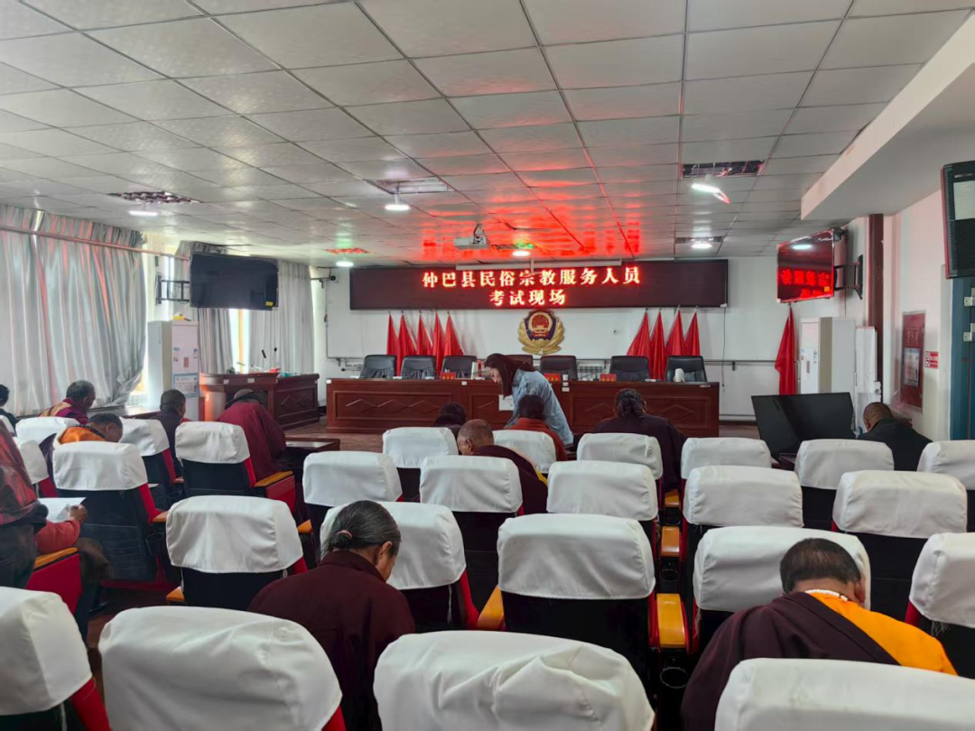 宣讲环节结束后,随即举行了民俗宗教服务人员资格证书考试。考试内容紧密围绕宣讲重点,涵盖政策理论、法律法规知识及佛教基本经典、仪轨等实务内容。参试人员态度认真,考场秩序井然。此次考试为仲巴县依法依规开展宗教活动、加强教职人员队伍管理奠定了基础。